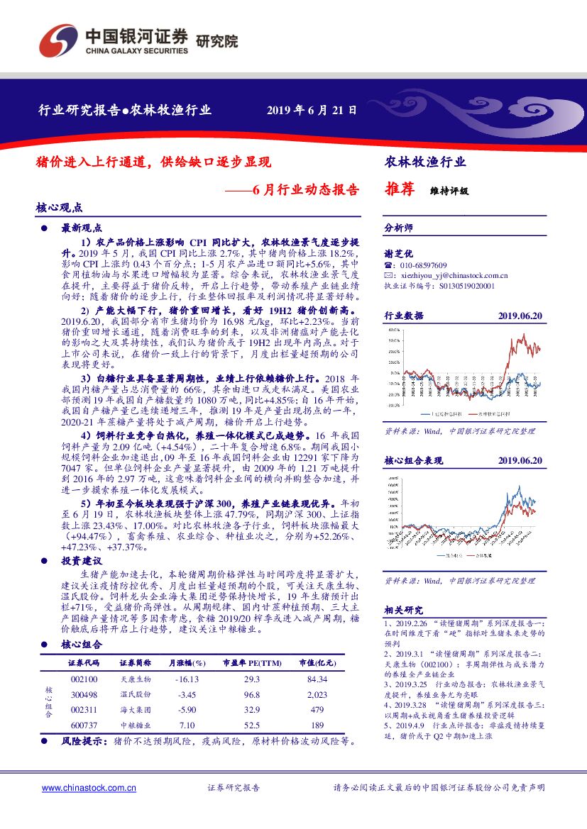 中国银河:农林牧渔6月行业动态报告:猪价进入上行通道,供给缺口逐步显现.pdf