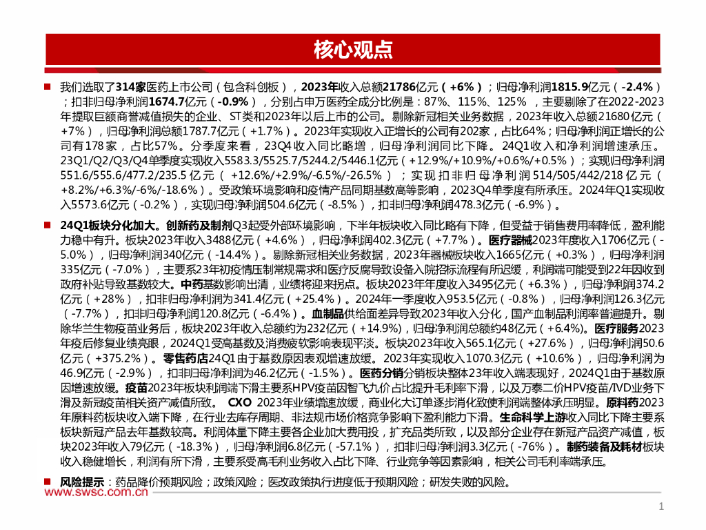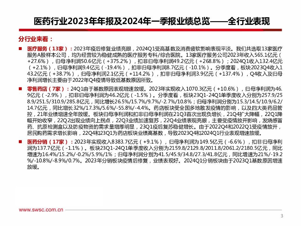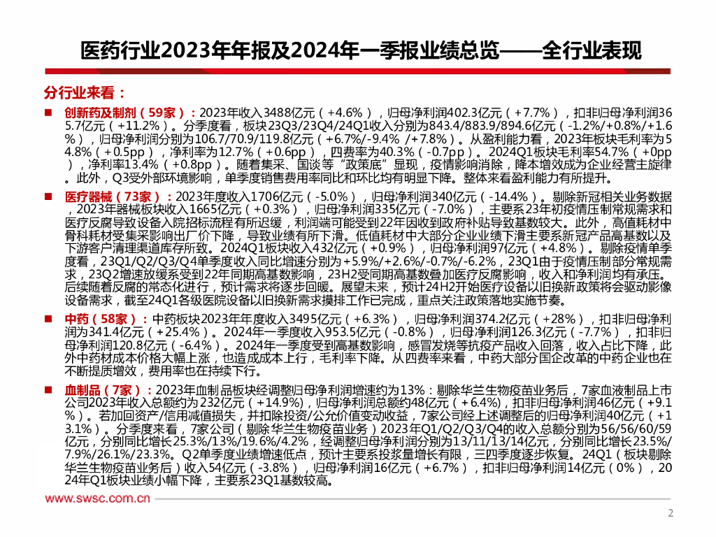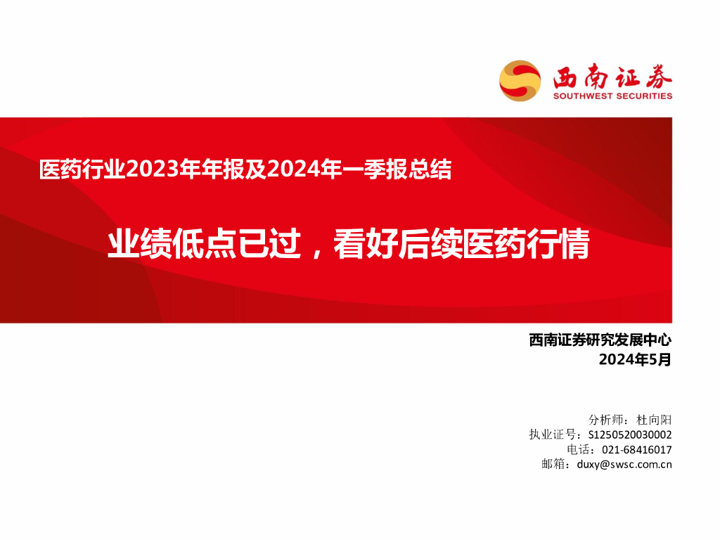 西南证券:医药行业2023年年报及2024年一季报总结:业绩低点已过,看好后续医药行情.pdf