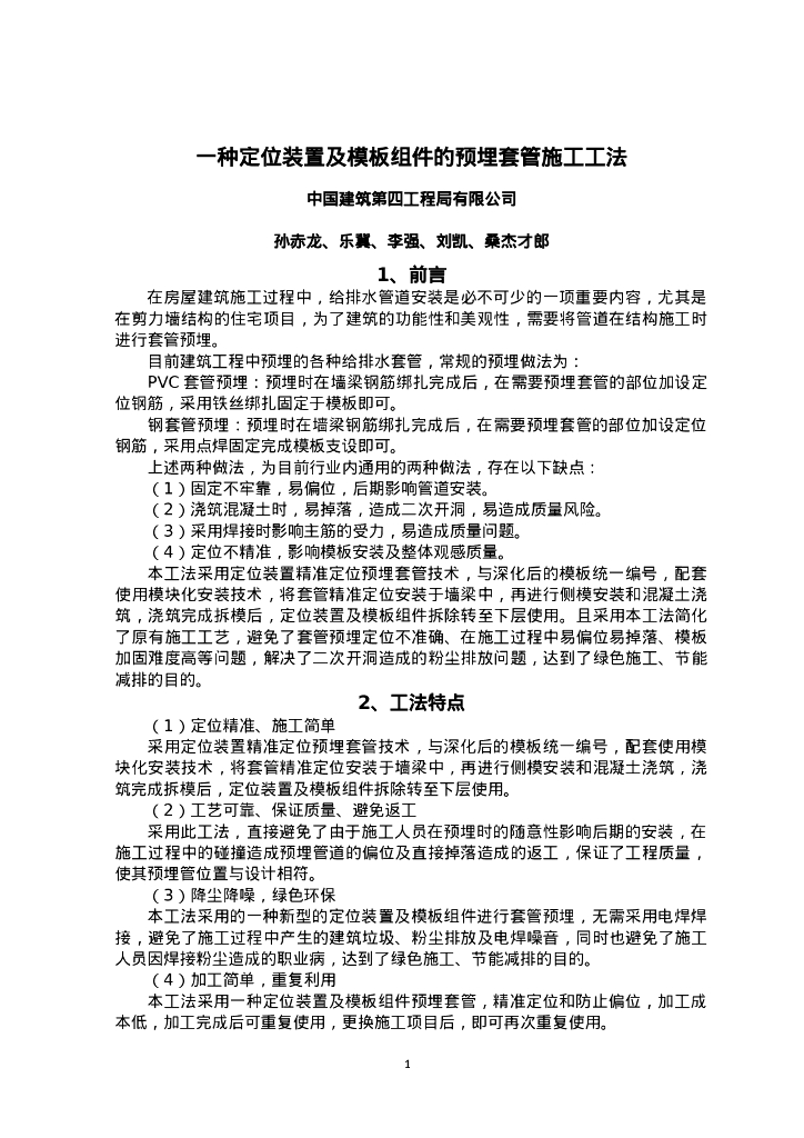 QHGF-2022035 一种定位装置及模板组件的预埋套管施工工法.doc