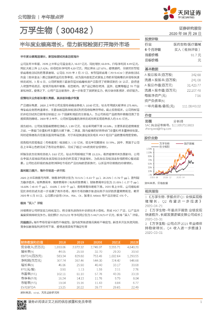天风证券:万孚生物(300482)-半年度业绩高增长,借力新冠检测打开海外市场.pdf