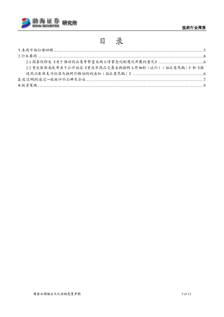渤海证券:医药行业周报:国务院发文促药品集采常态化,应采尽采下尽量提高采购比例.pdf