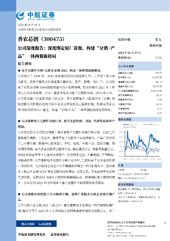 中航证券:香农芯创(300475)-公司深度报告:深度绑定原厂资源,构建“分销+产品”一体两翼新格局.pdf