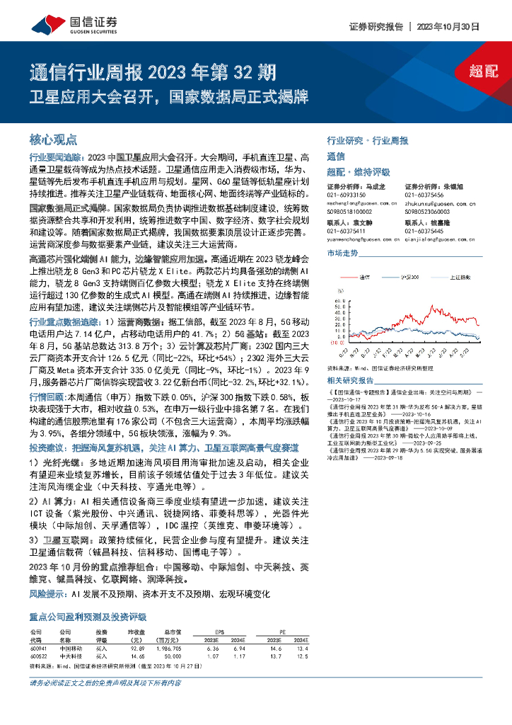 国信证券:通信行业周报2023年第32期:卫星应用大会召开,国家数据局正式揭牌.pdf