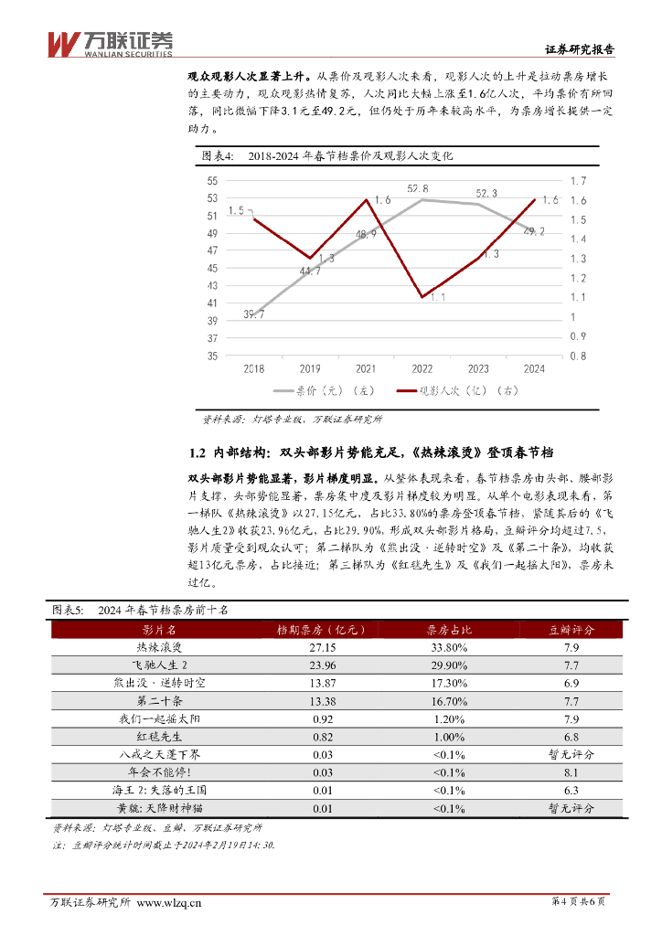 万联证券:传媒行业跟踪报告:2024年春节档创影史新高,档期形成双头部格局.pdf