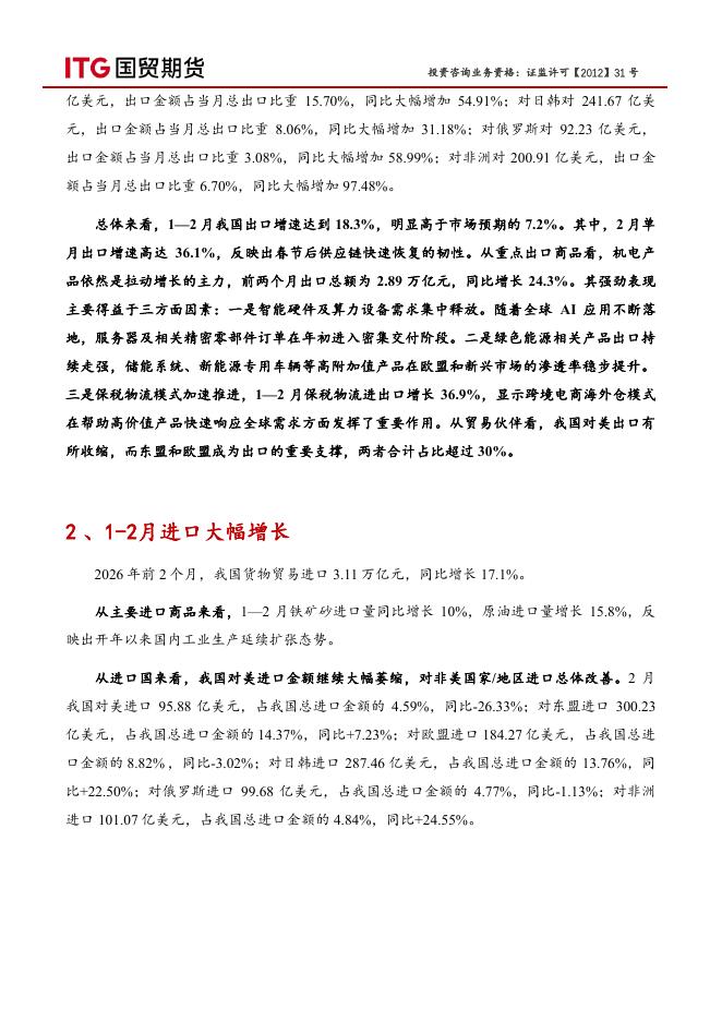 国贸期货:宏观专题报告:1-2月我国外贸表现强劲-260311.pdf