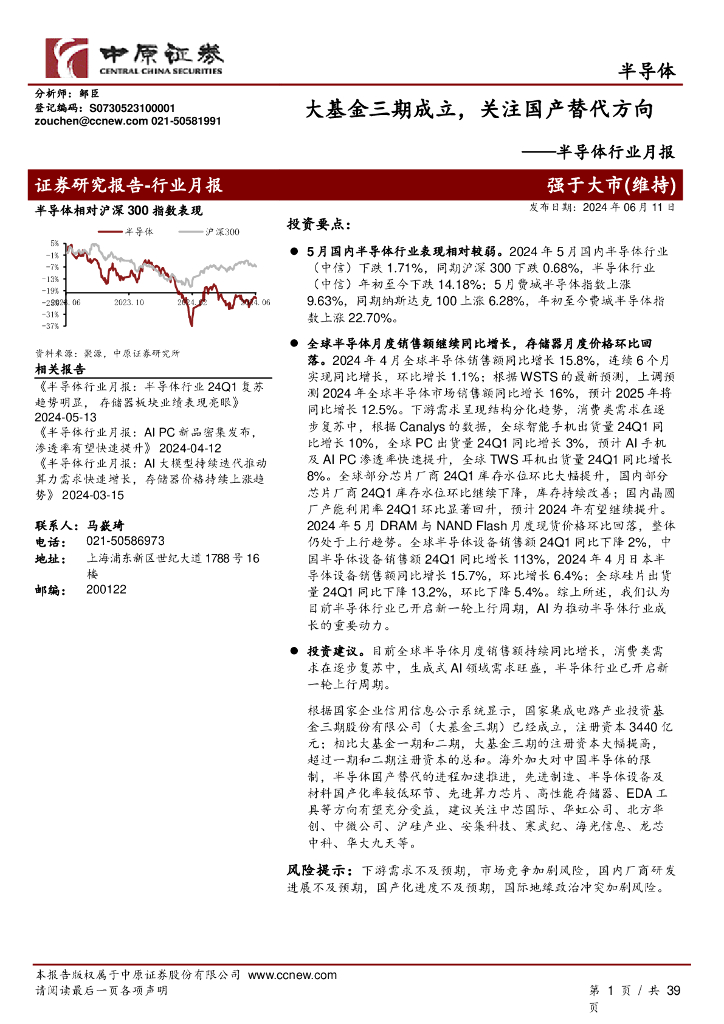中原证券:半导体行业月报:大基金三期成立,关注国产替代方向.pdf