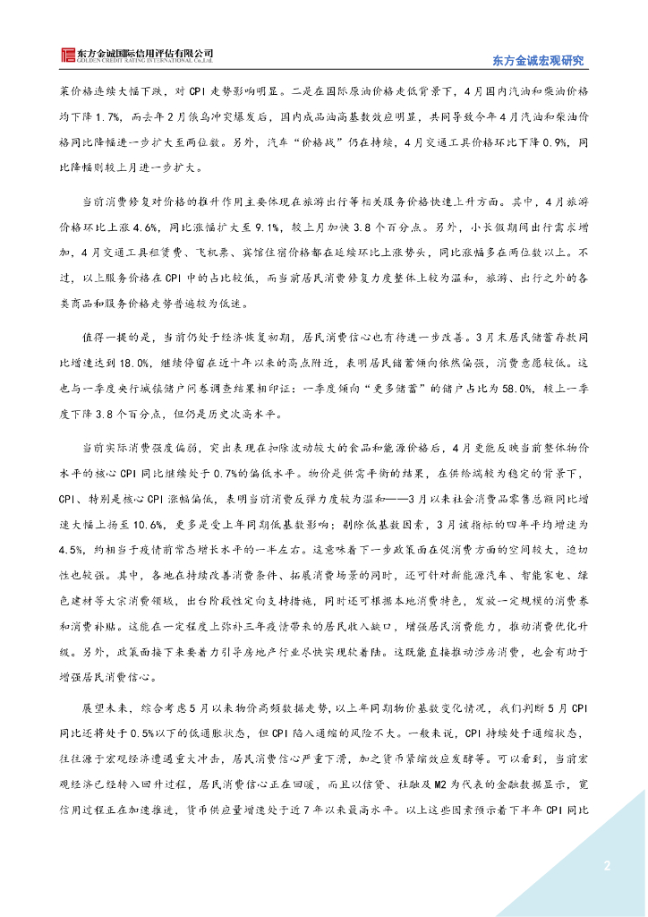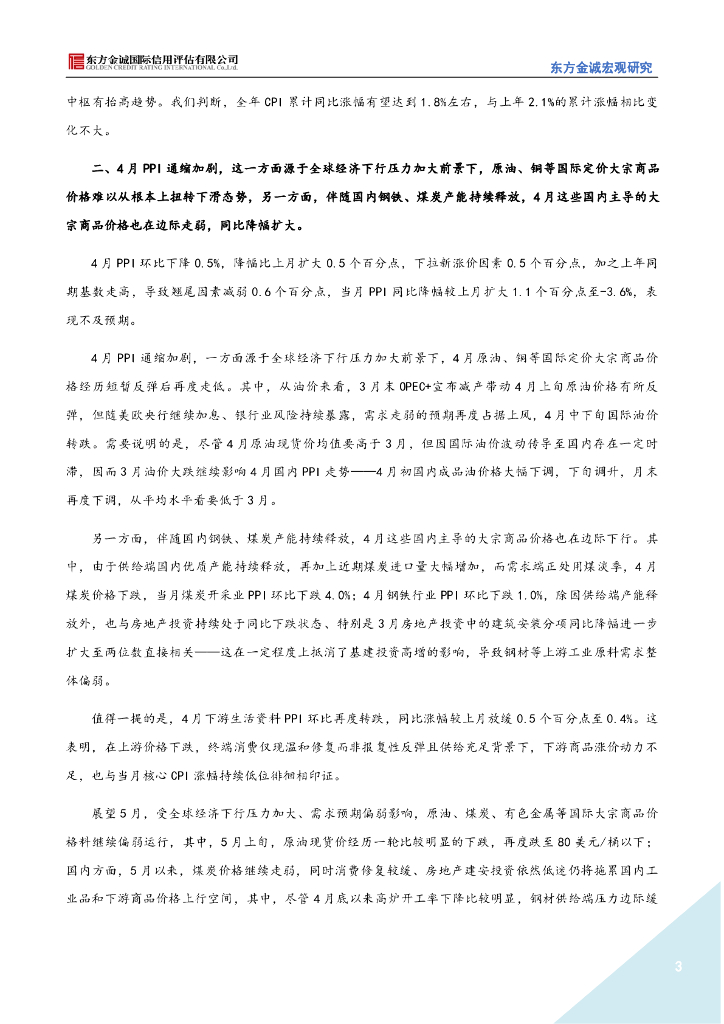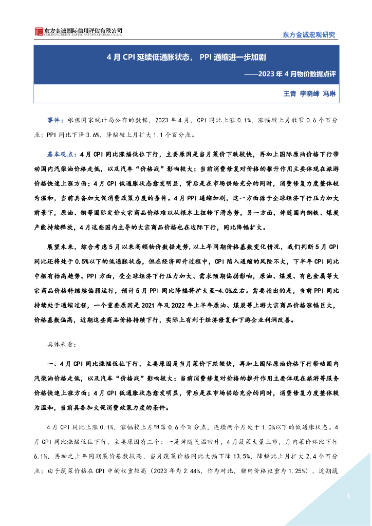 东方金诚:4月CPI延续低通胀状态, PPI通缩进一步加剧(2023年4月物价数据点评).pdf