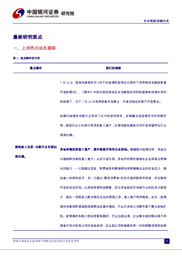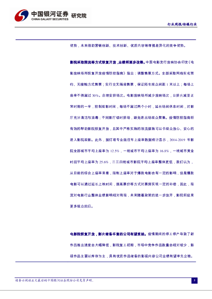 中国银河:传媒行业周报:影院20日迎来复工,关注电影及相关行业复苏表现.pdf