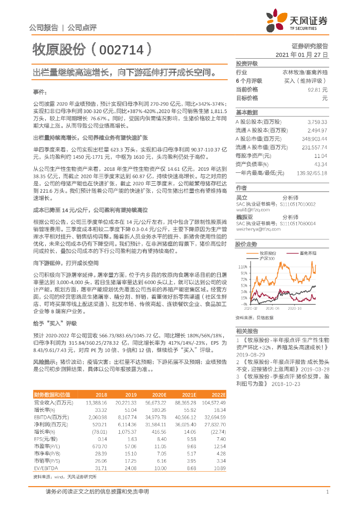 天风证券:牧原股份(002714)-出栏量继续高速增长,向下游延伸打开成长空间.pdf