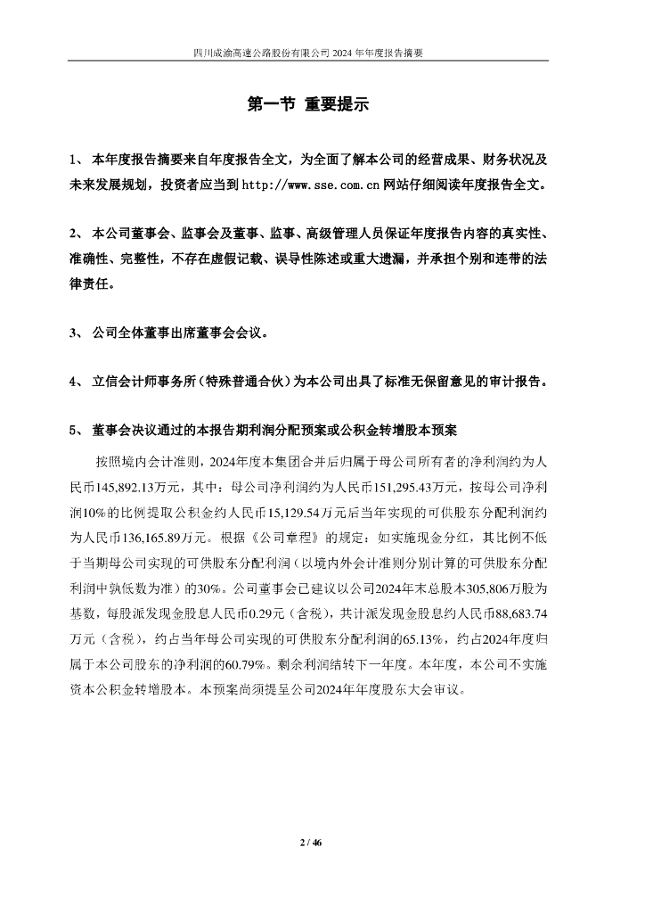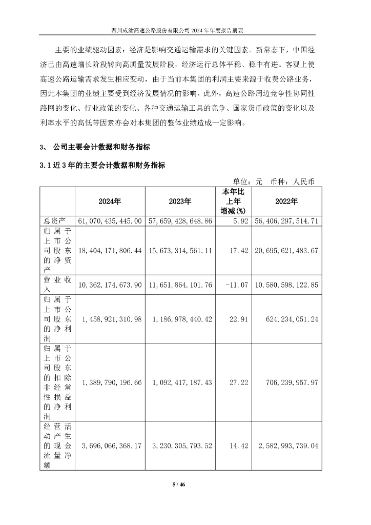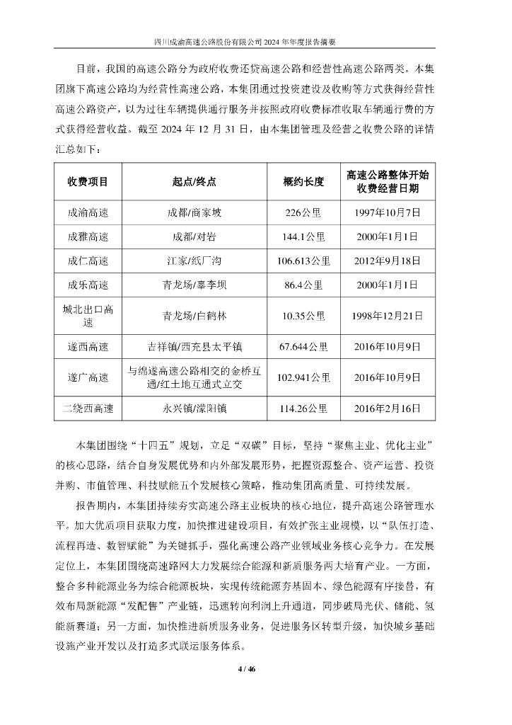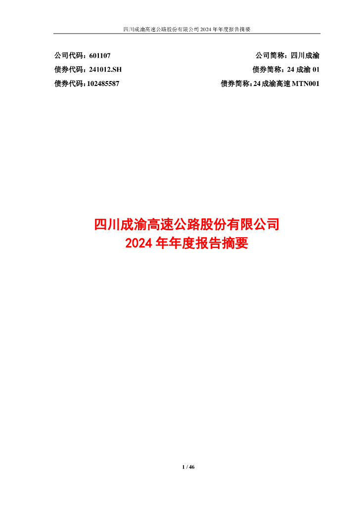 601107-四川成渝:四川成渝2024年年度报告摘要.pdf