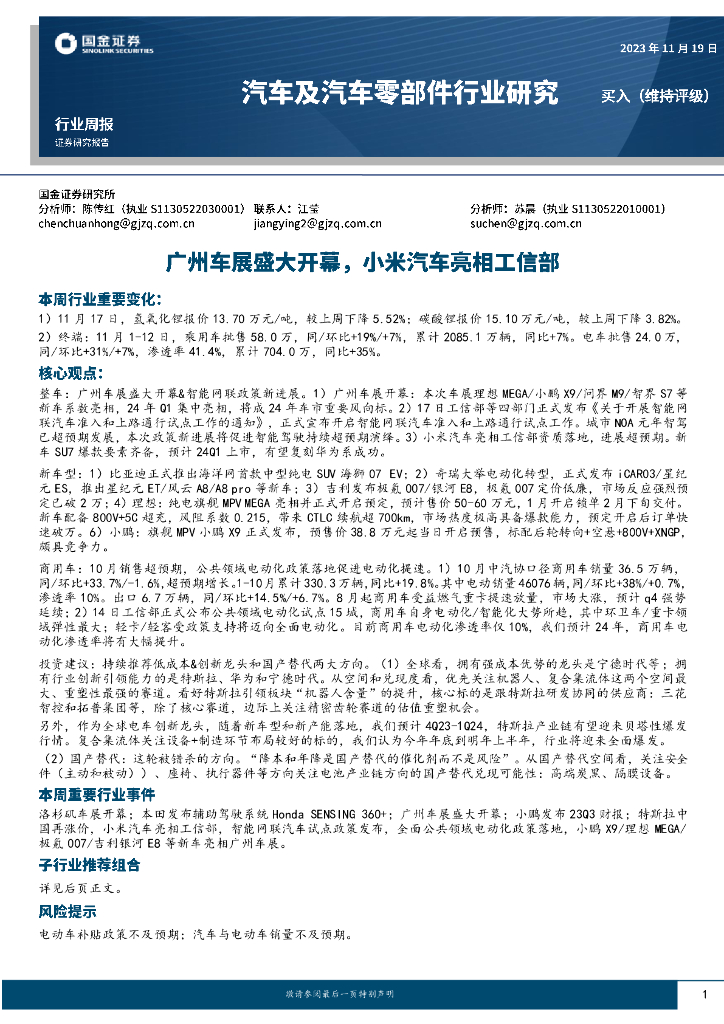 国金证券:汽车及汽车零部件行业研究:广州车展盛大开幕,小米汽车亮相工信部.pdf