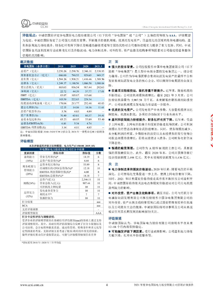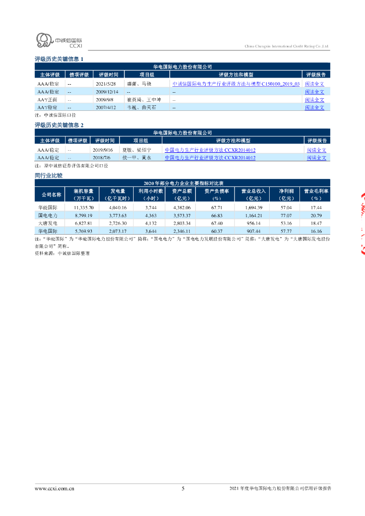 中诚信:2021年度华电国际电力股份有限公司信用评级报告.pdf
