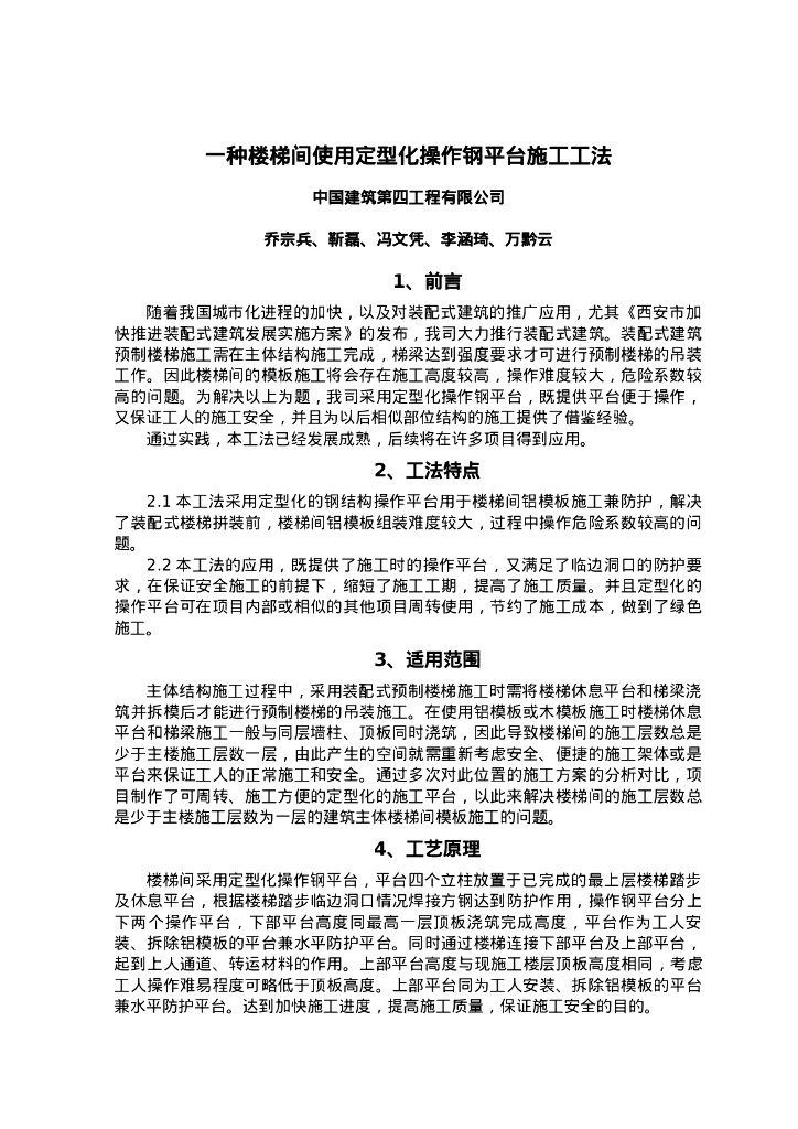 QHGF-2022039 一种楼梯间使用定型化操作钢平台施工工法.doc