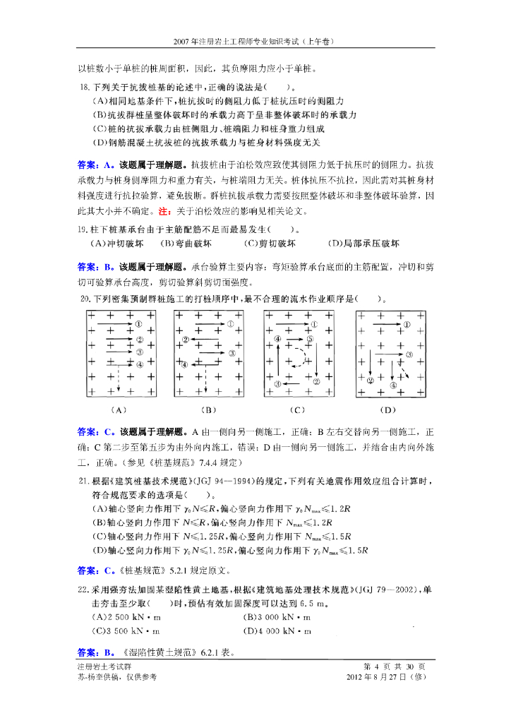 2007年全国注册岩土工程师专业知识考试试题(解析).pdf