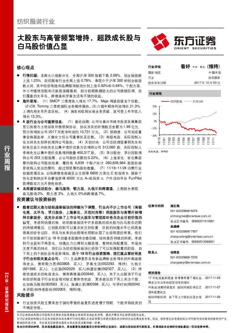 东方证券:纺织服装行业周报:大股东与高管频繁增持,超跌成长股与白马股价值凸显.pdf