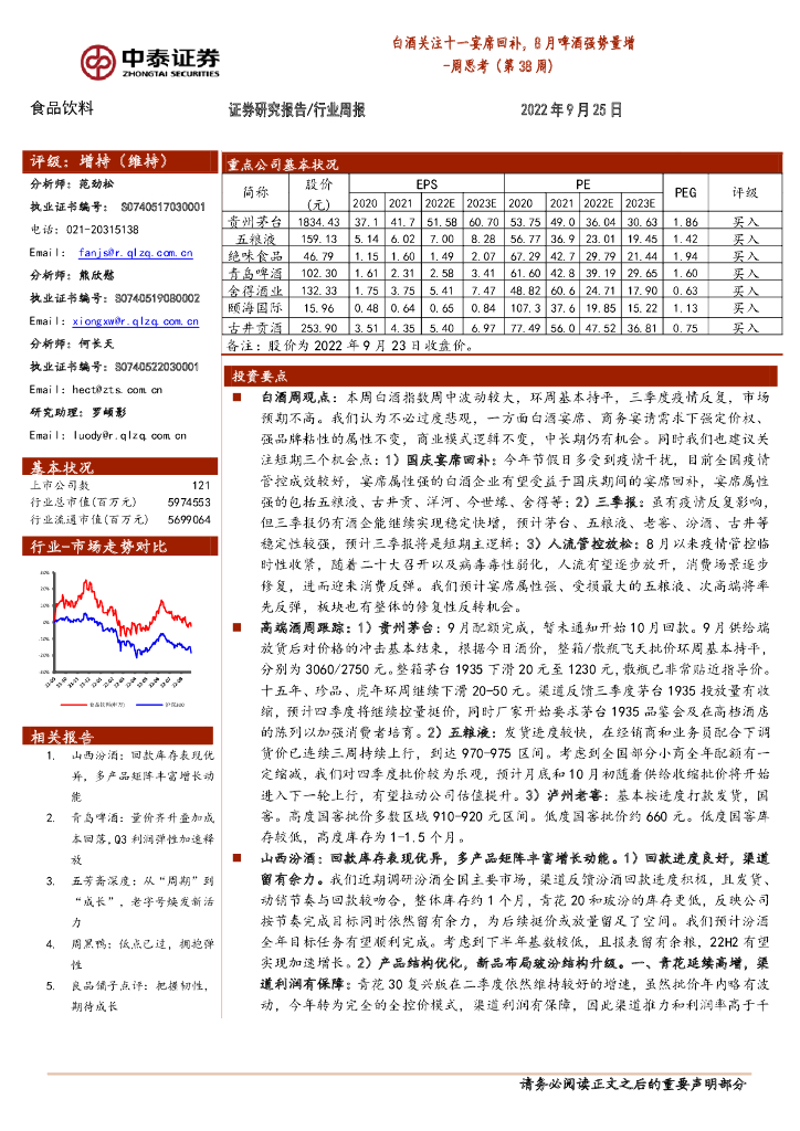 中泰证券:食品饮料周思考(第38周):白酒关注十一宴席回补,8月啤酒强势量增.pdf