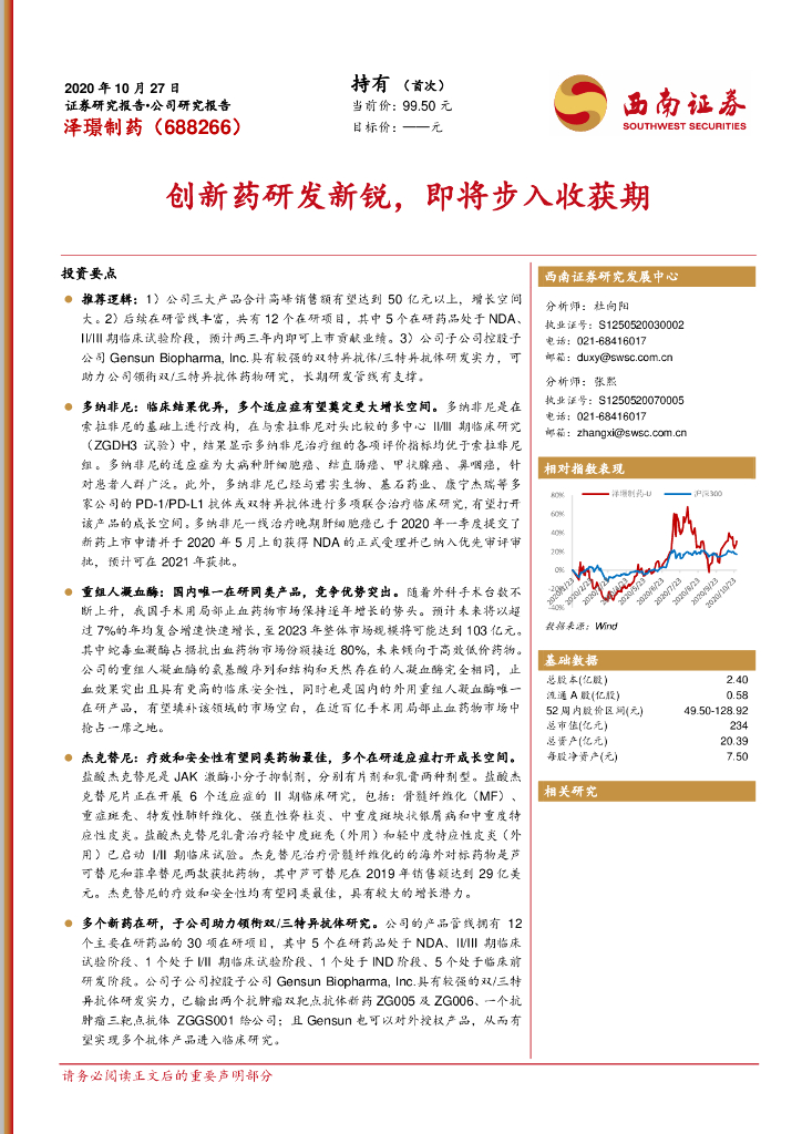 西南证券:泽璟制药(688266)-创新药研发新锐,即将步入收获期.pdf