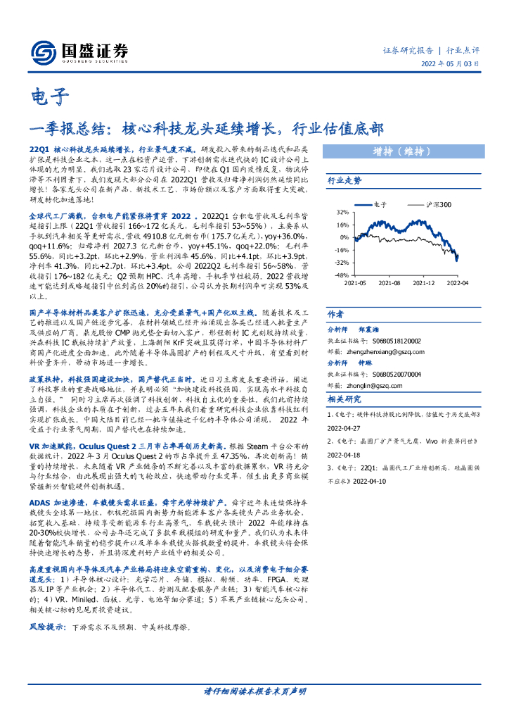 国盛证券:电子一季报总结:核心科技龙头延续增长,行业估值底部.pdf