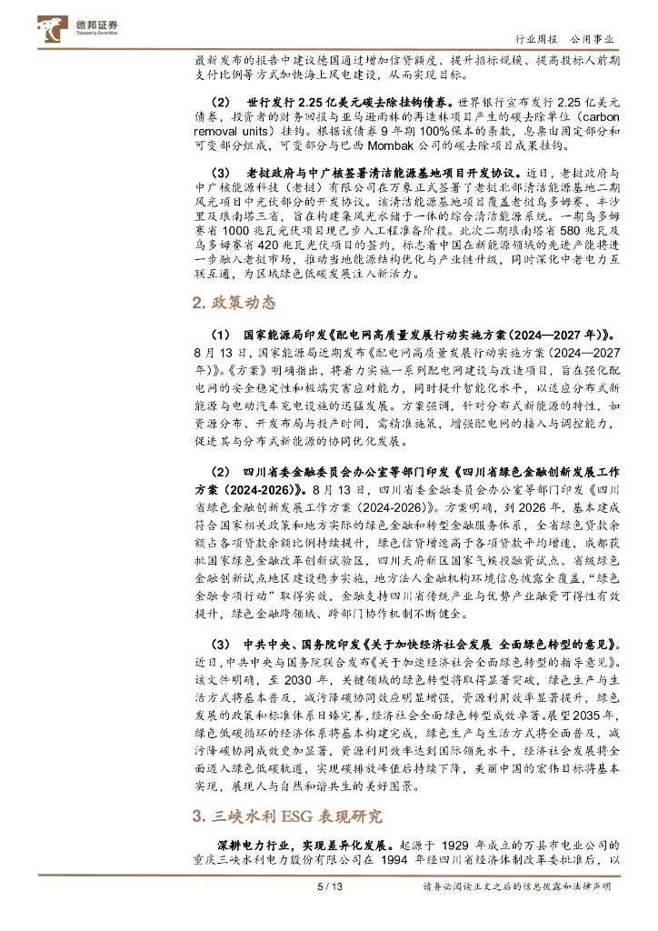 德邦证券:公用事业行业ESG周报:国家发展改革委将从五方面推进生态文明建设;世行发行2.25亿美元碳去除挂钩债券.pdf