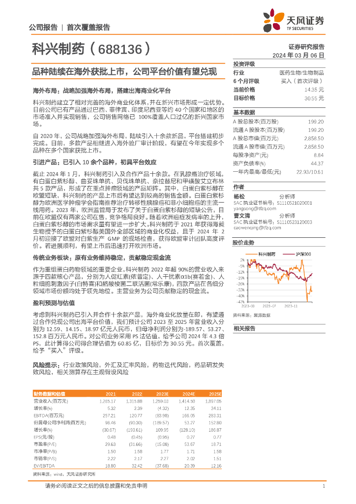 天风证券:科兴制药(688136)-品种陆续在海外获批上市,公司平台价值有望兑现.pdf