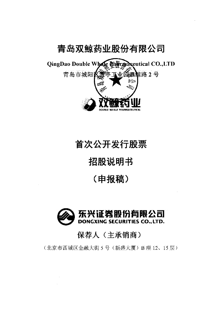 青岛双鲸药业股份有限公司深交所主板IPO上市招股说明书.pdf