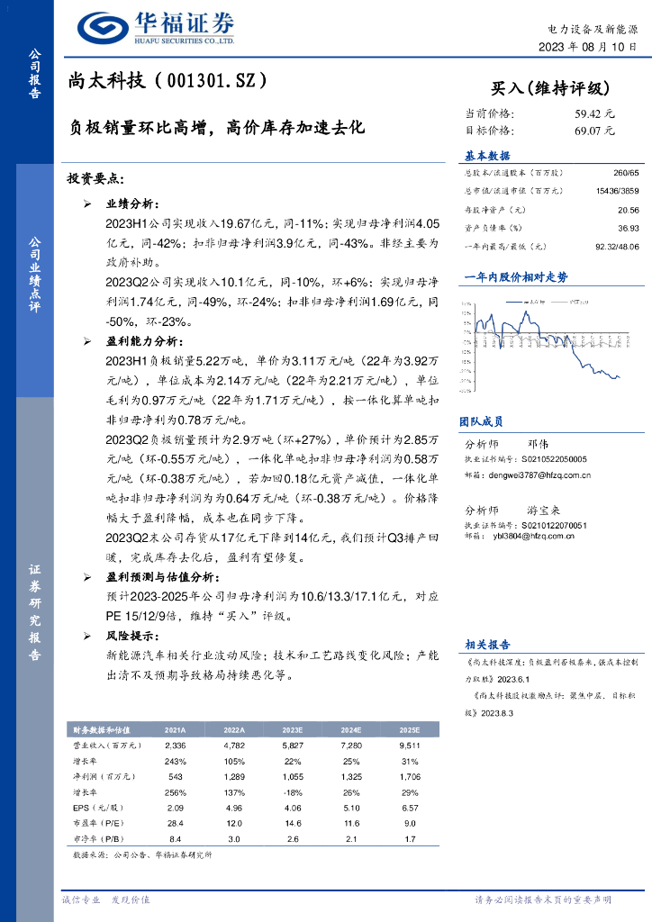 华福证券:尚太科技(001301)-负极销量环比高增,高价库存加速去化.pdf