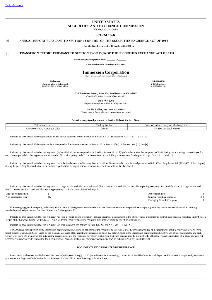 Immersion(IMMR)2020财年年度报告(英文版).pdf