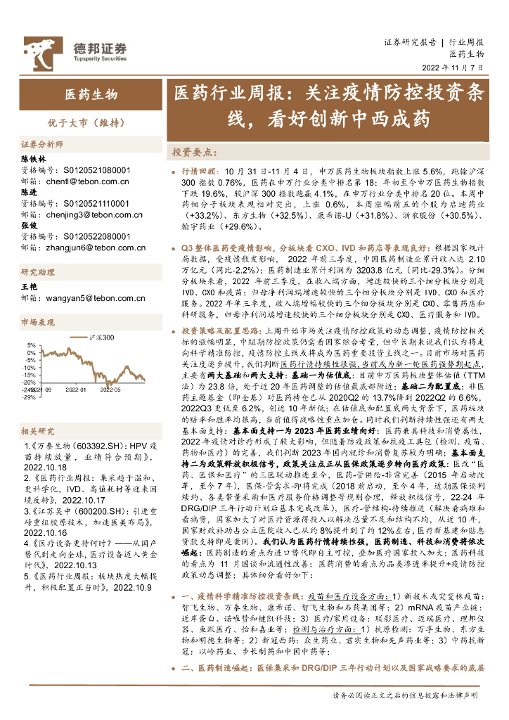 德邦证券:医药行业周报:关注疫情防控投资条线,看好创新中西成药.pdf