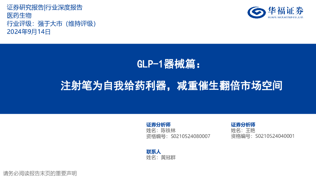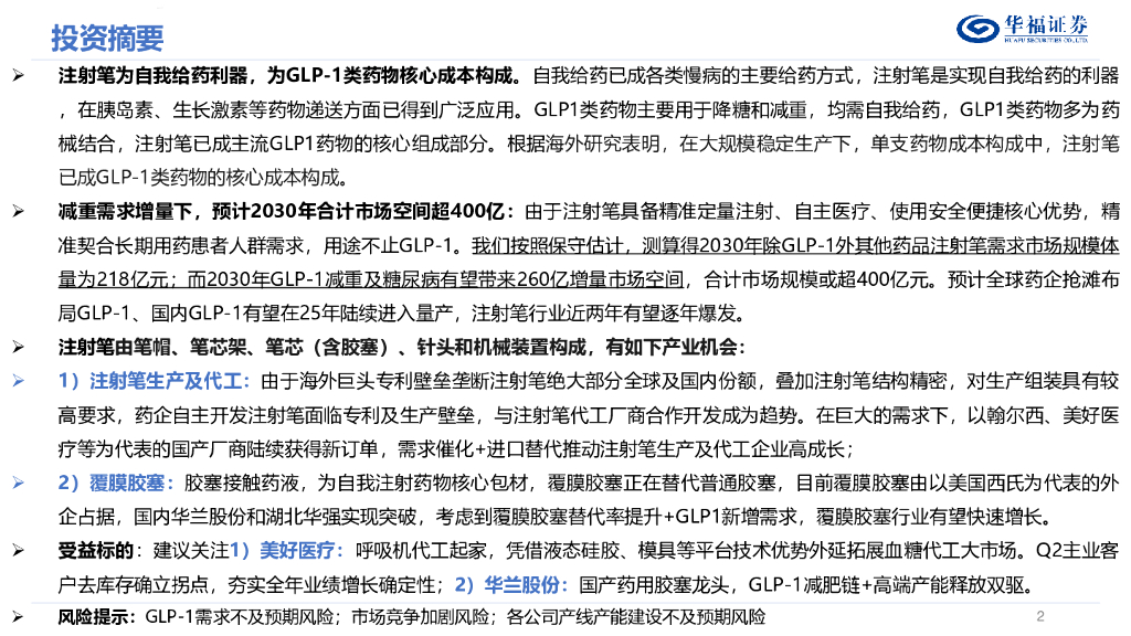 华福证券:医药生物行业GLP-1器械篇:注射笔为自我给药利器,减重催生翻倍市场空间.pdf