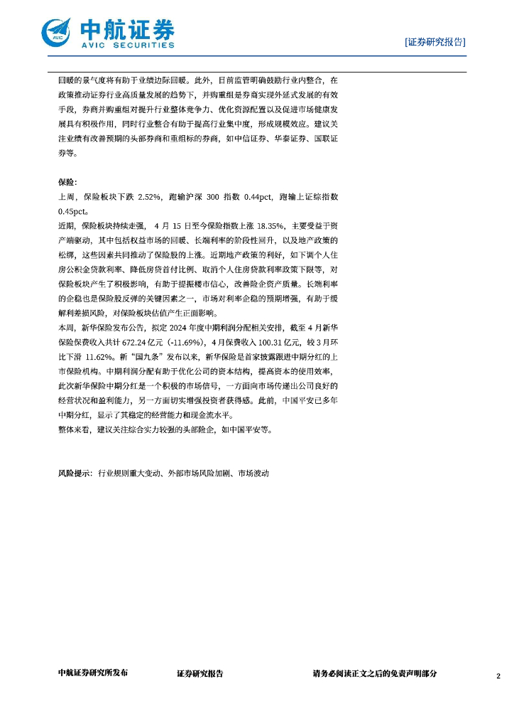 中航证券:非银行业周报(2024年第十七期):监管发布减持新规,强化监管约束力度.pdf