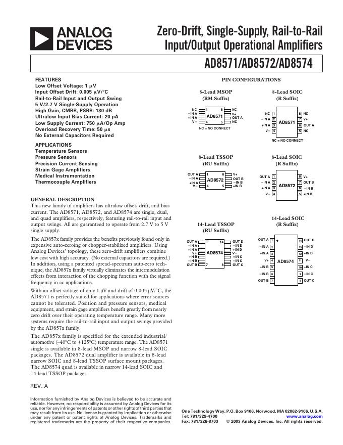 ANALOG DEVICES AD8571/AD8572/AD8574 数据手册.pdf