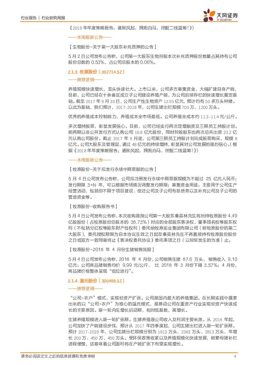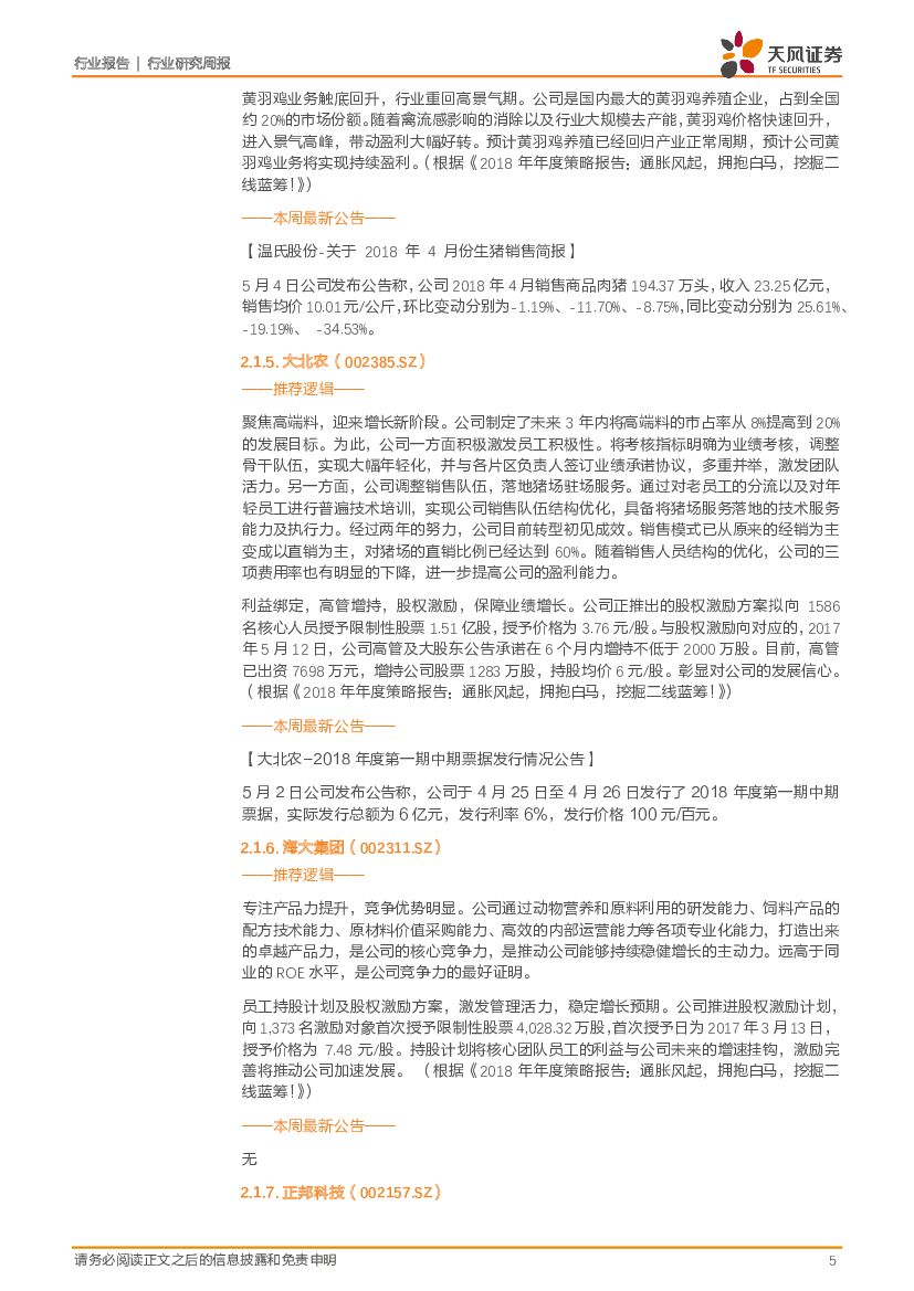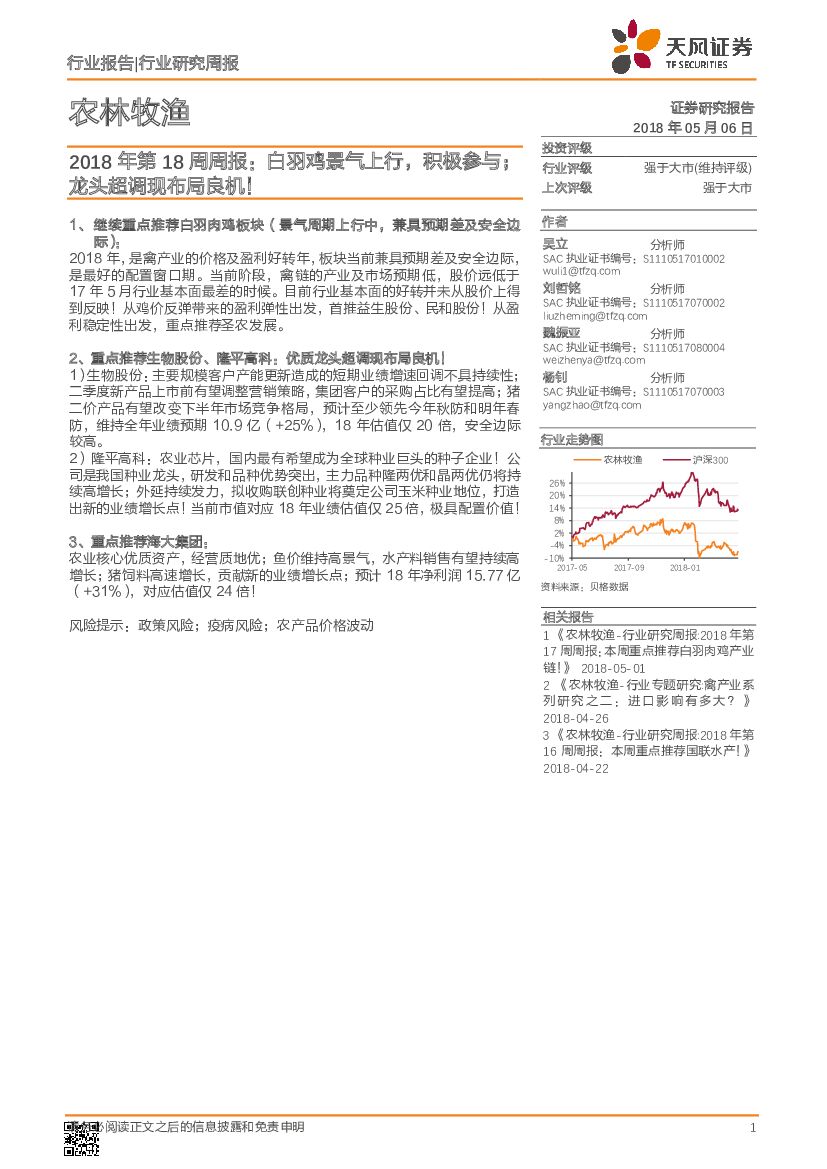 天风证券:农林牧渔2018年第18周周报: 白羽鸡景气上行,积极参与;龙头超调现布局良机!.pdf