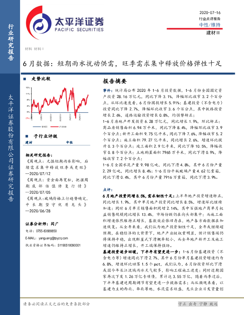 太平洋证券:建材Ⅲ6月数据:短期雨水扰动供需,旺季需求集中释放价格弹性十足.pdf