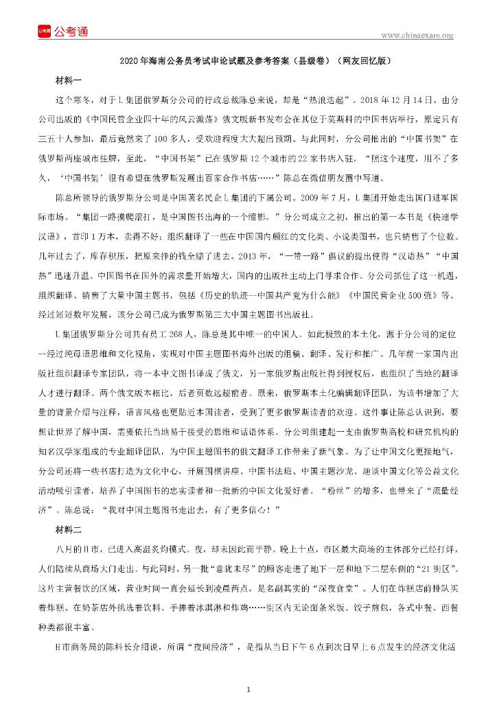 2020年海南公务员考试申论试题及参考答案(县级卷).pdf