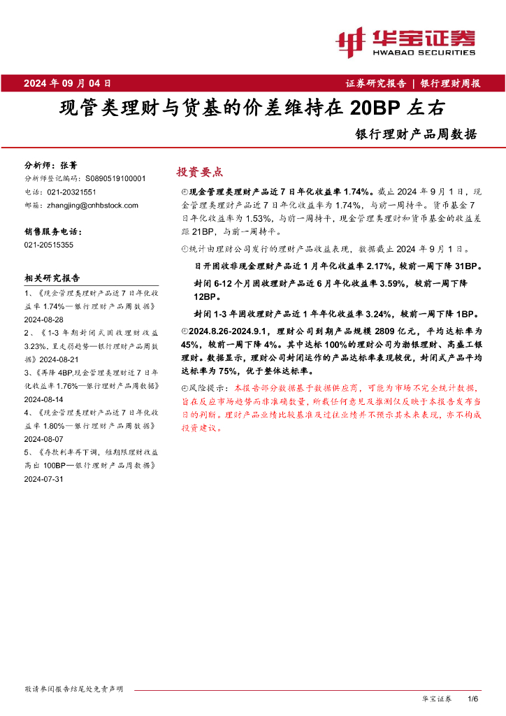 华宝证券:银行理财产品周数据:现管类理财与货基的价差维持在20BP左右.pdf