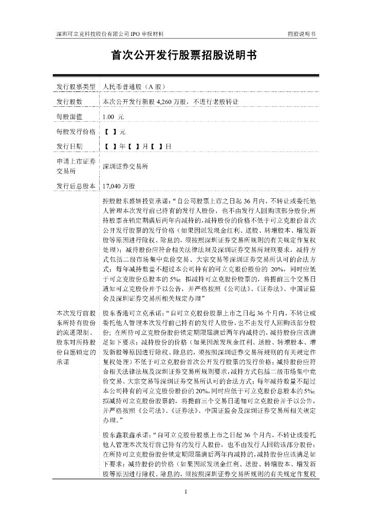深圳可立克科技股份有限公司深交所主板IPO上市招股说明书.pdf
