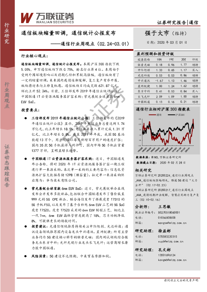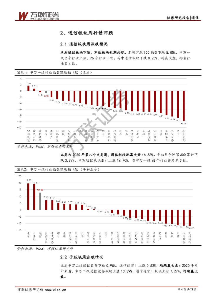 万联证券:通信行业周观点:通信板块缩量回调,通信统计公报发布.pdf
