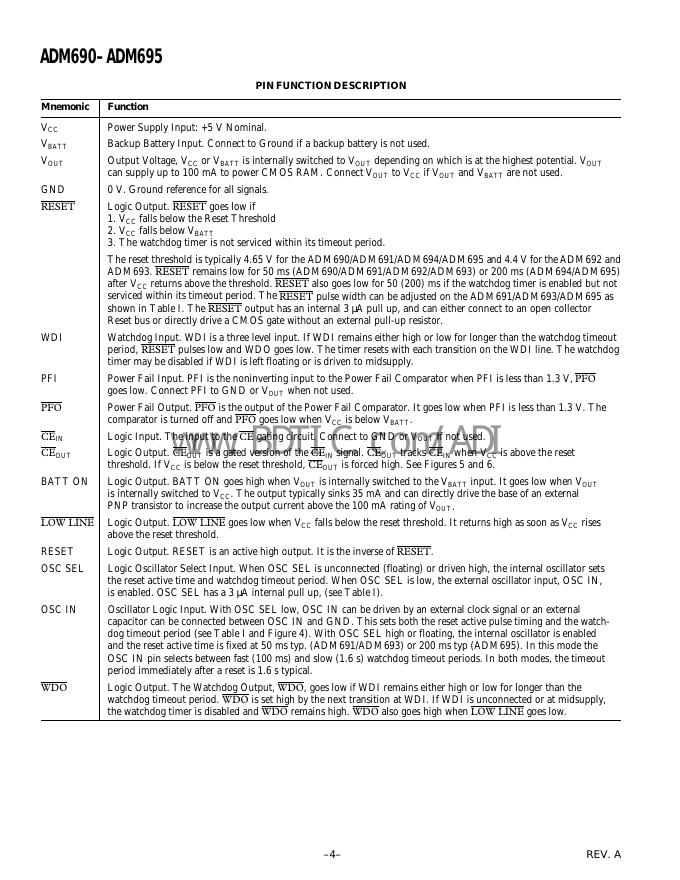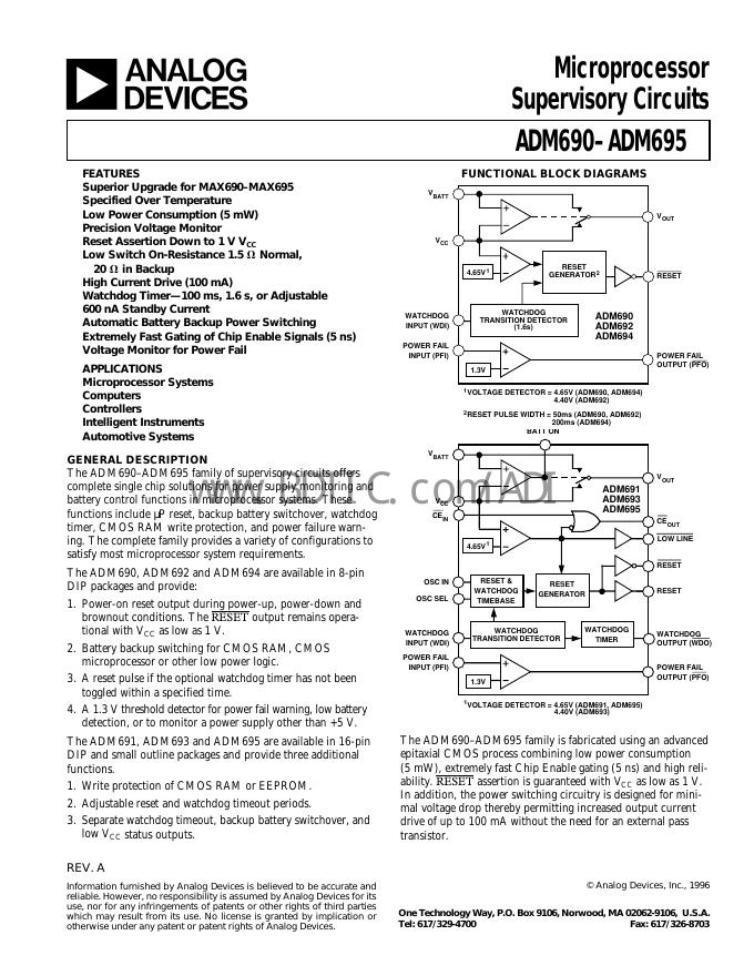 ANALOG DEVICES ADM695 数据手册.pdf