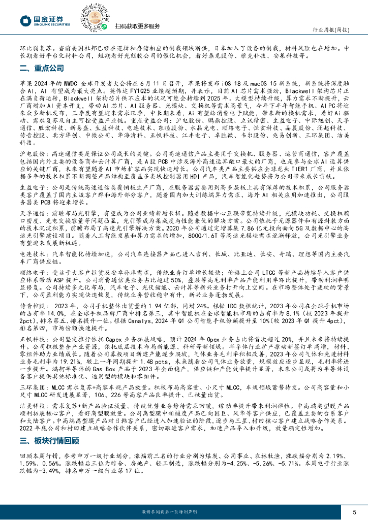 国金证券:电子行业周报:苹果WWDC大会即将召开,关注AI端侧应用机会.pdf