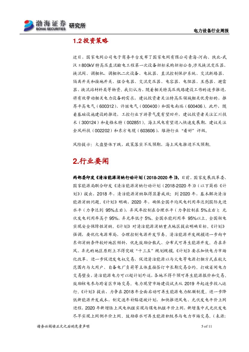 渤海证券:电力设备行业周报:两部委印发清洁能源消纳行动计划.pdf