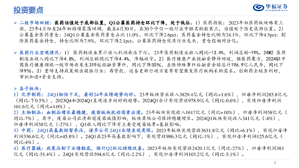 华福证券:医药板块23年年报和Q1季报总结:至暗时刻已过,静待反转.pdf