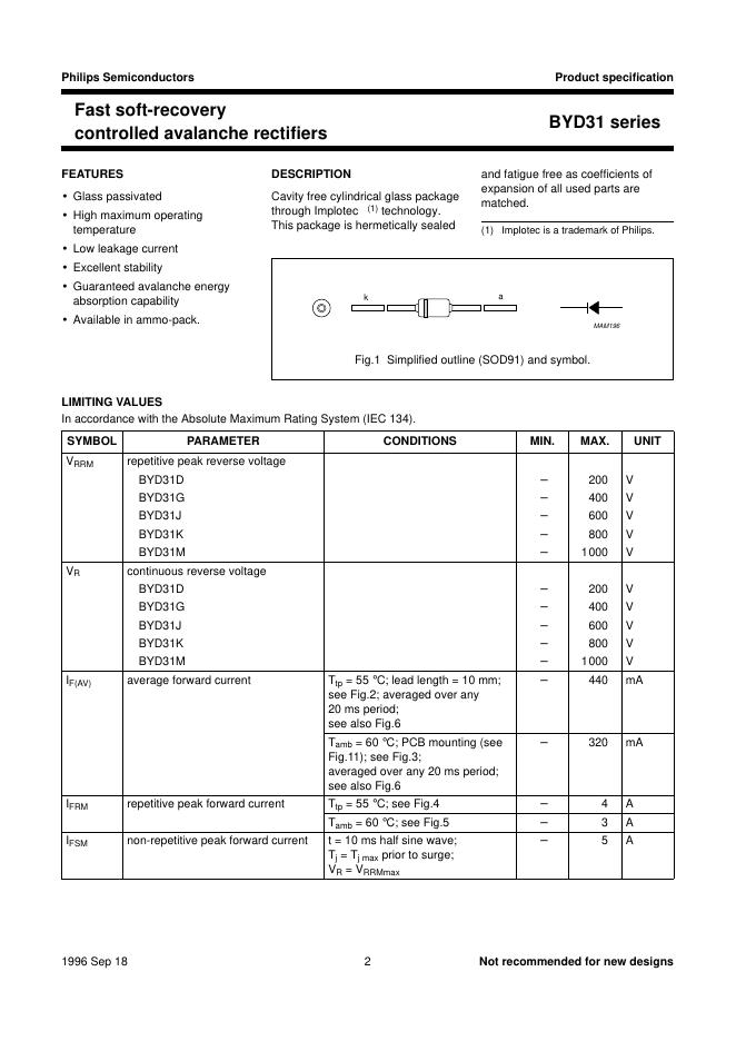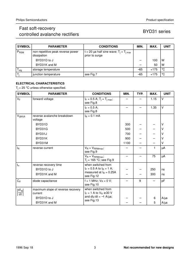 PHILIPS BYD31 series Fast soft-recovery controlled avalanche rectifiers 数据手册.pdf