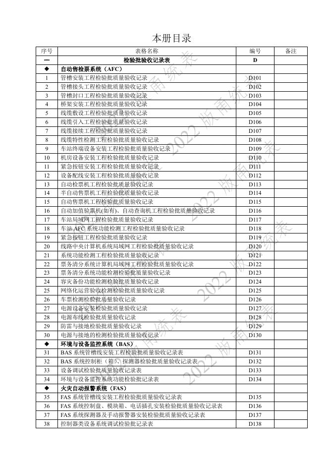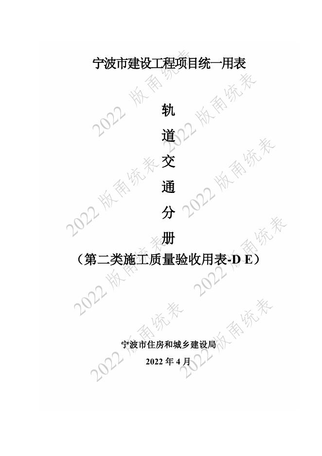 宁波市建设工程资料统一用表(2022版)轨道交通分册(第二类施工质量验收用表-D E)第六册 AFC BAS FAS等检验批与施工记录(机电部分 ).pdf