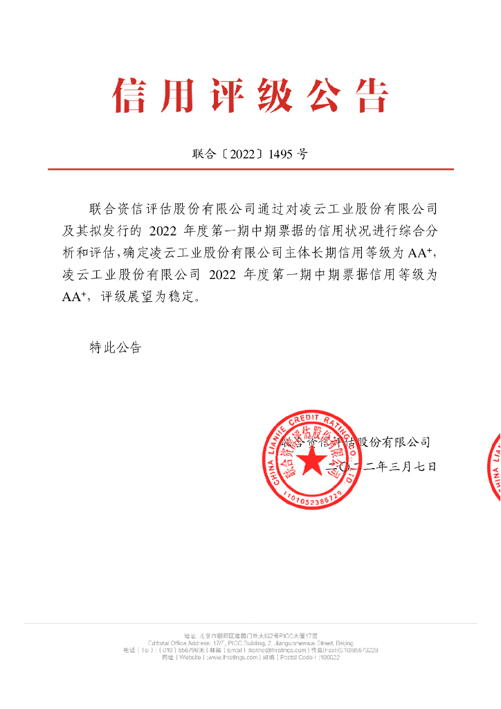 联合资信:凌云工业股份有限公司2022年度第一期中期票据信用评级报告.pdf