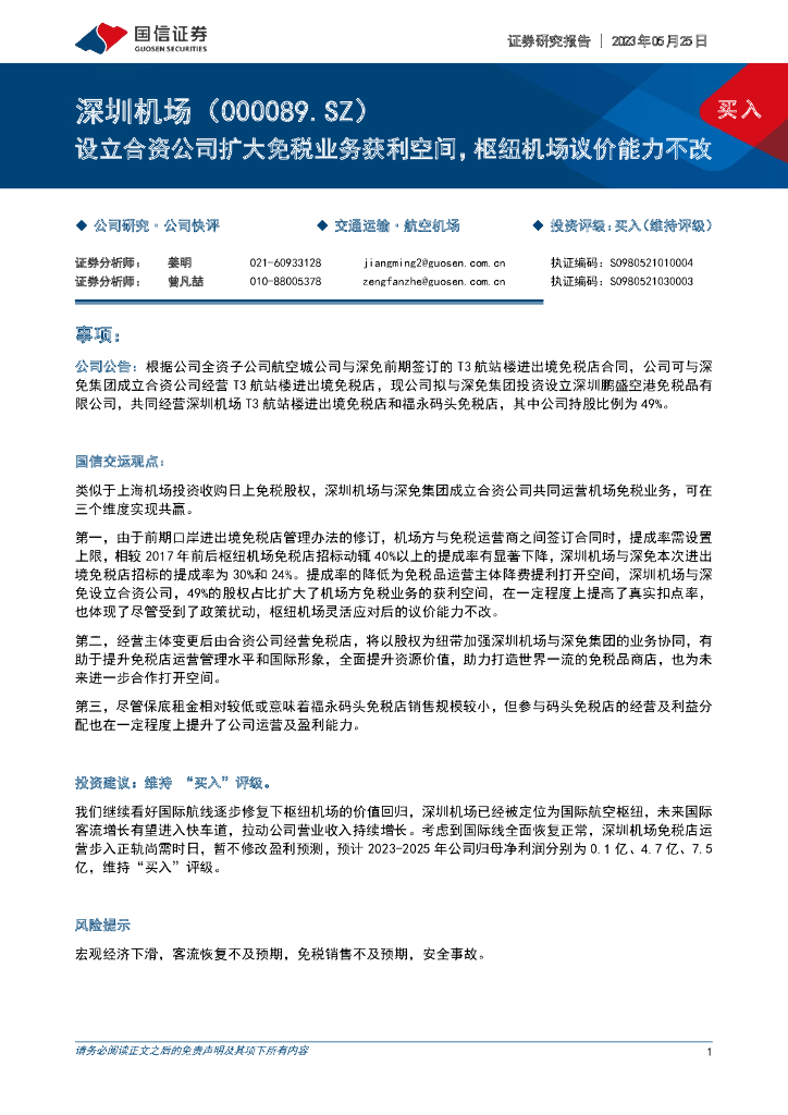 国信证券:深圳机场(000089)-设立合资公司扩大免税业务获利空间,枢纽机场议价能力不改.pdf