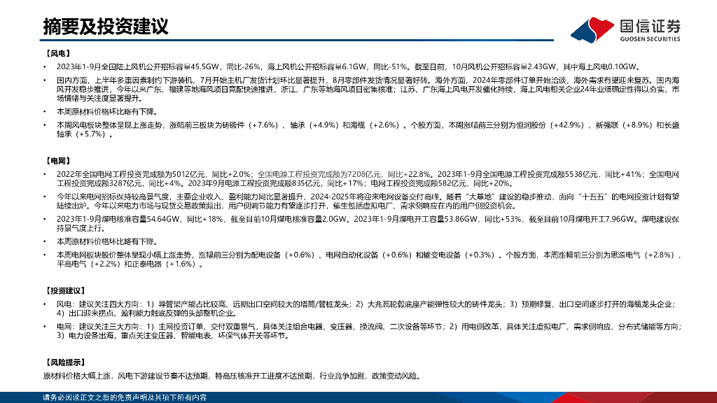 国信证券:风电/电网产业链周评(10月第4周):风电三季报底部信号显现,9月风电/电网建设明显提速.pdf