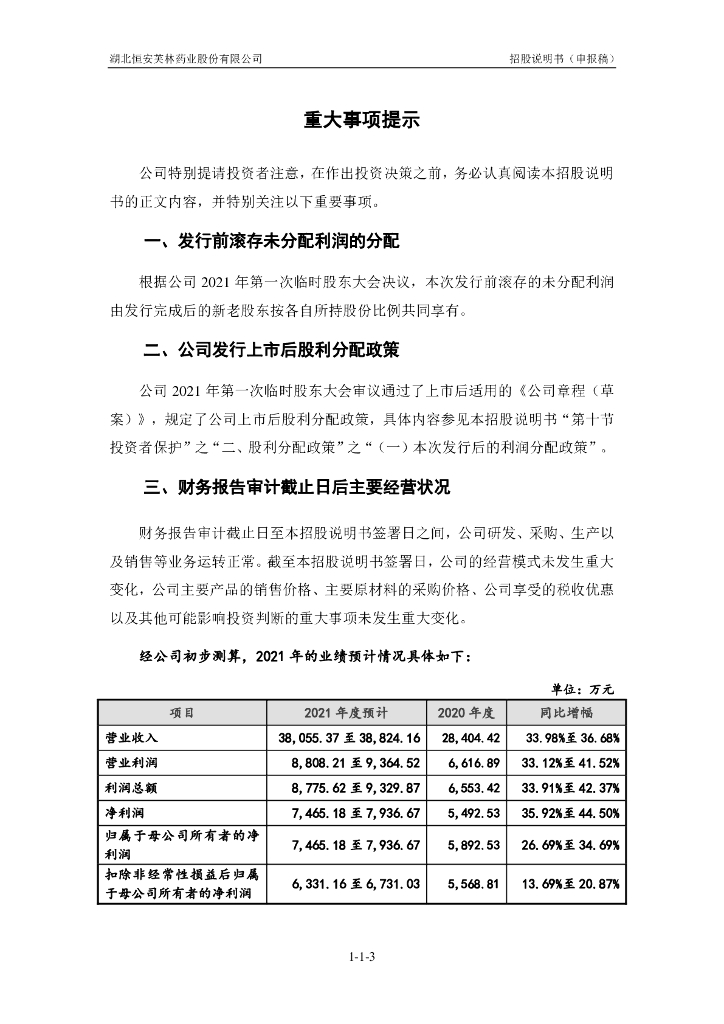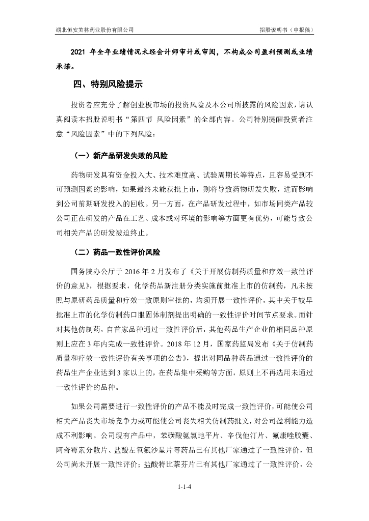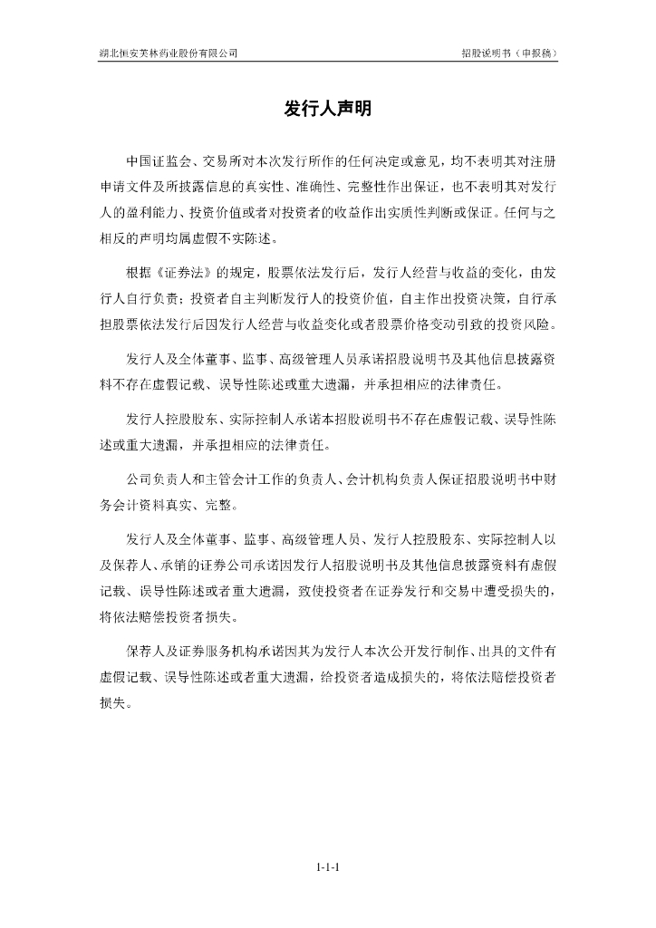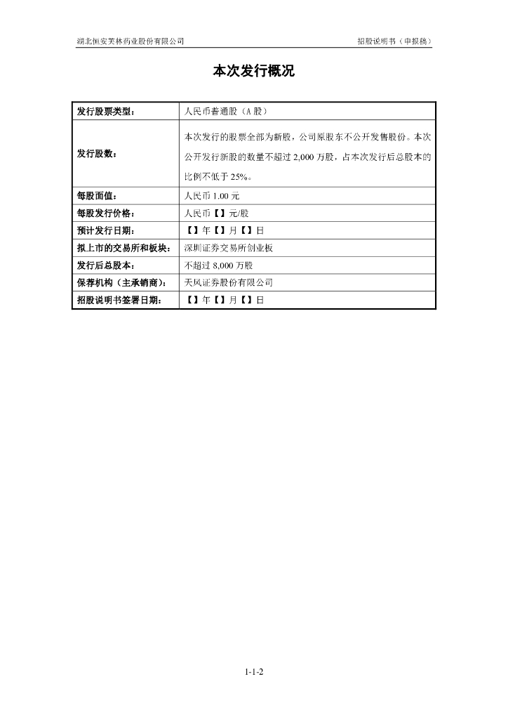 湖北恒安芙林药业股份有限公司深交所创业板IPO上市招股说明书.pdf