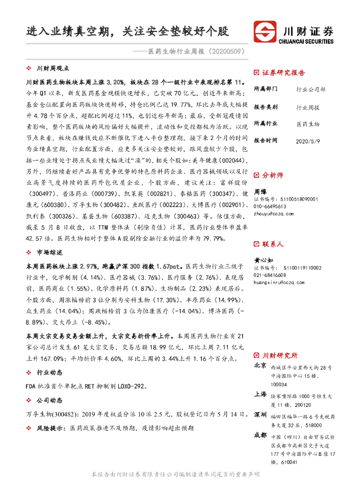 川财证券:医药生物行业周报:进入业绩真空期,关注安全垫较好个股.pdf