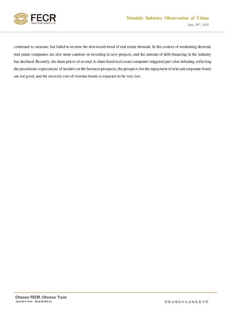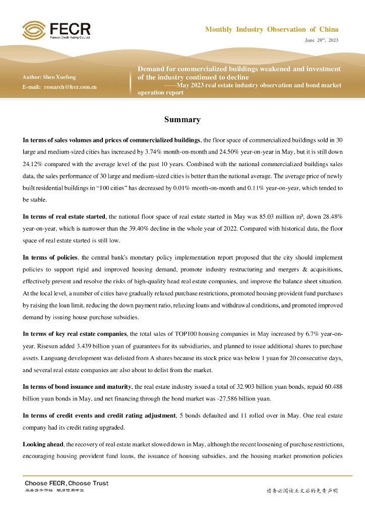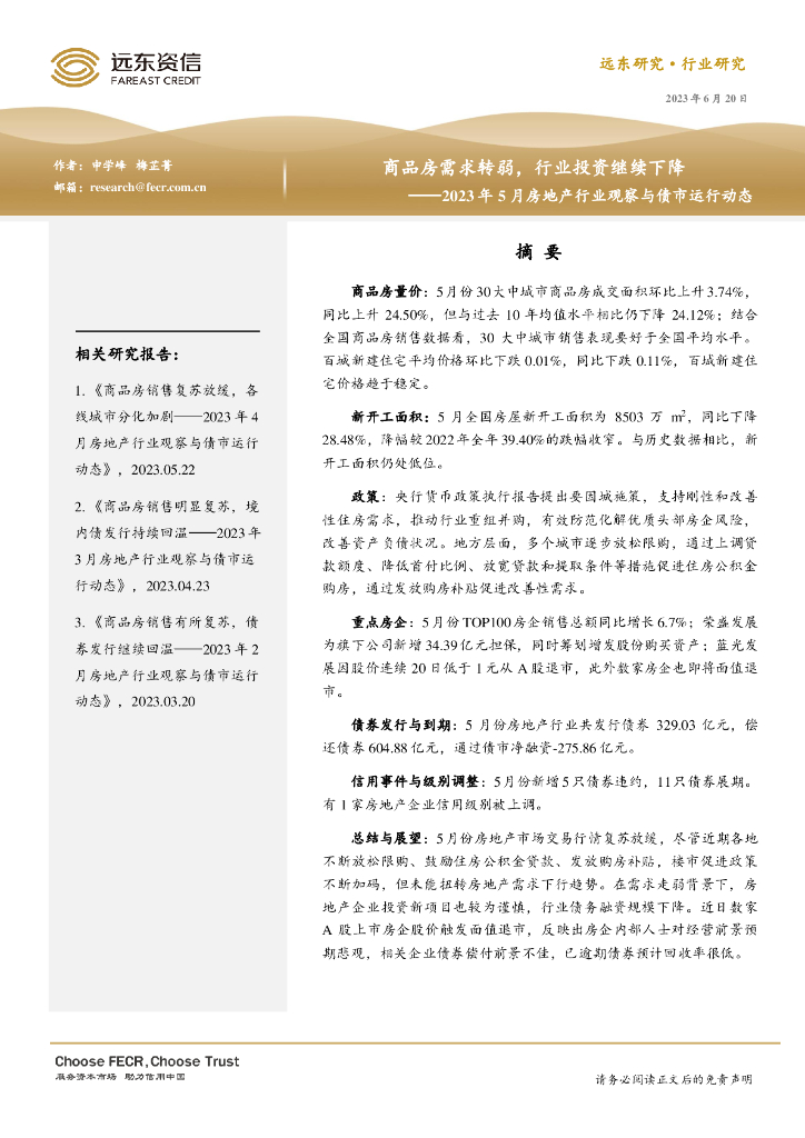远东资信:2023年5月房地产行业观察与债市运行动态:商品房需求转弱,行业投资继续下降.pdf