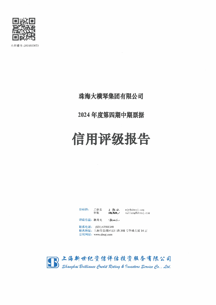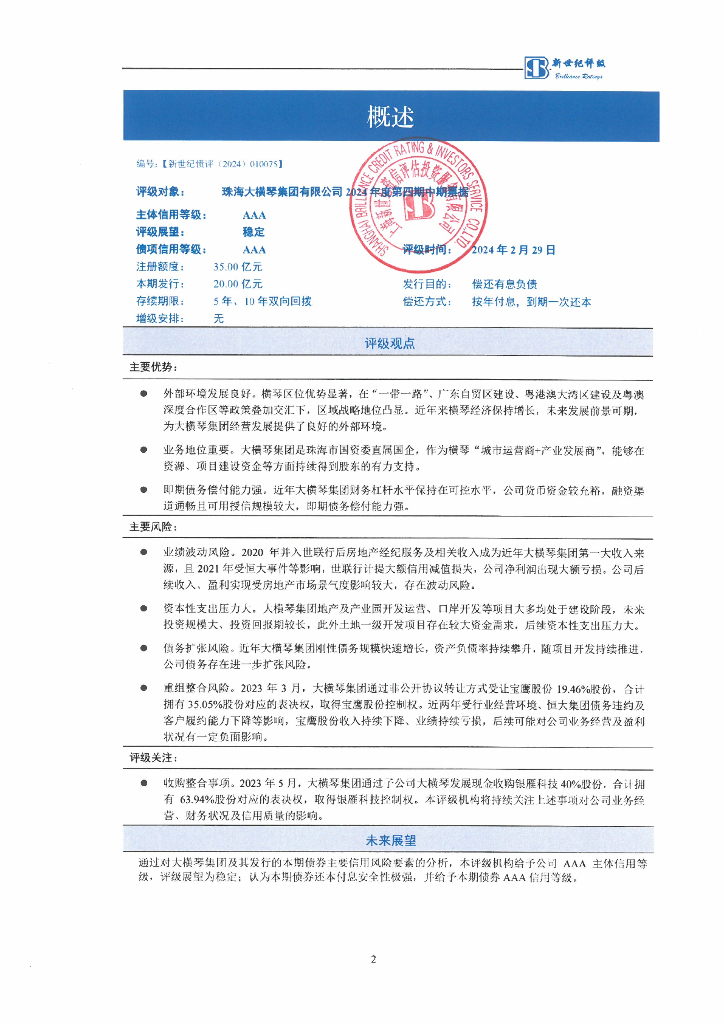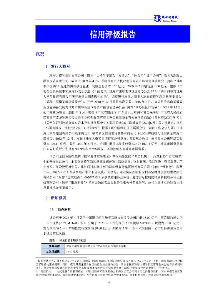 新世纪:珠海大横琴集团有限公司2024年度第四期中期票据信用评级报告.pdf